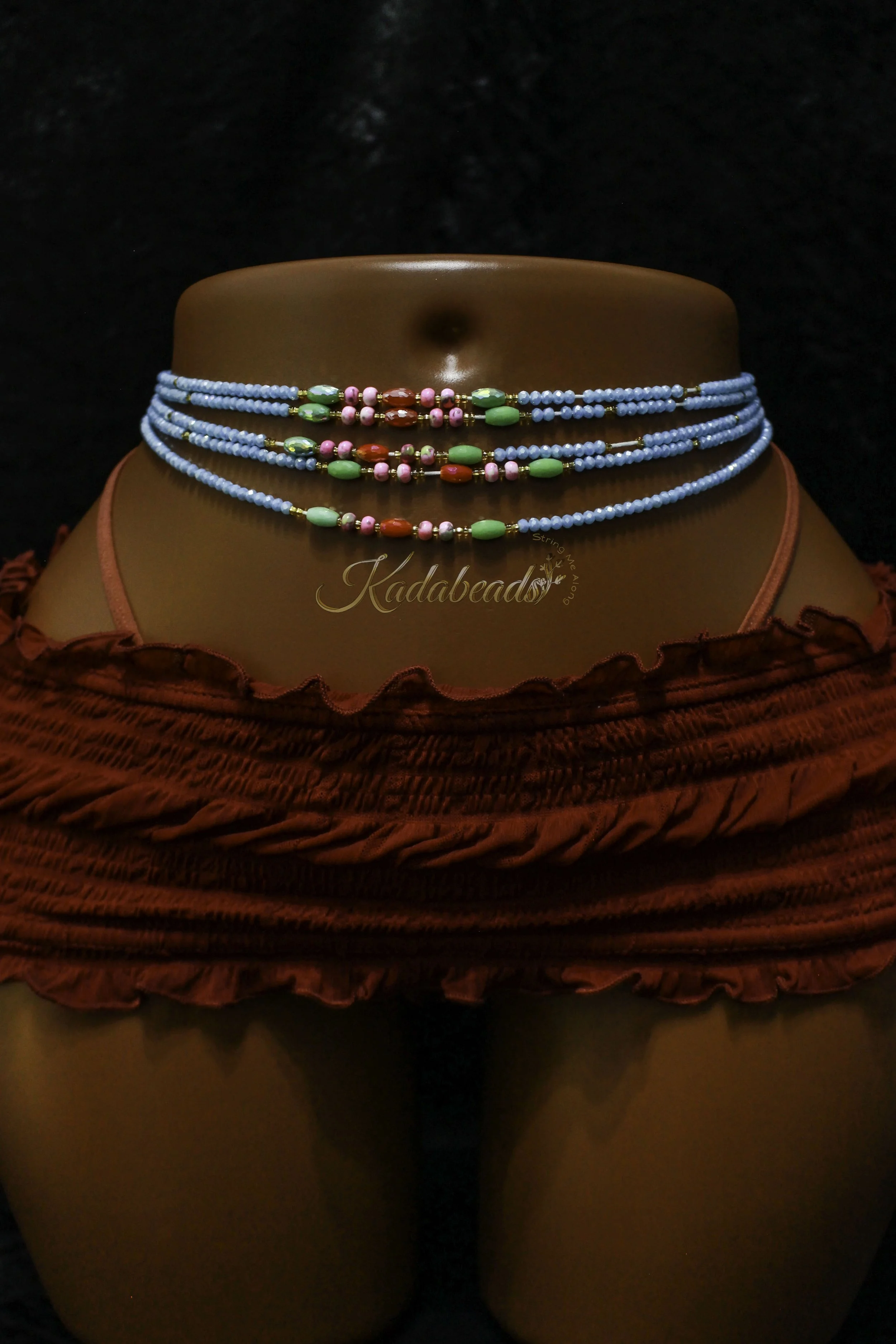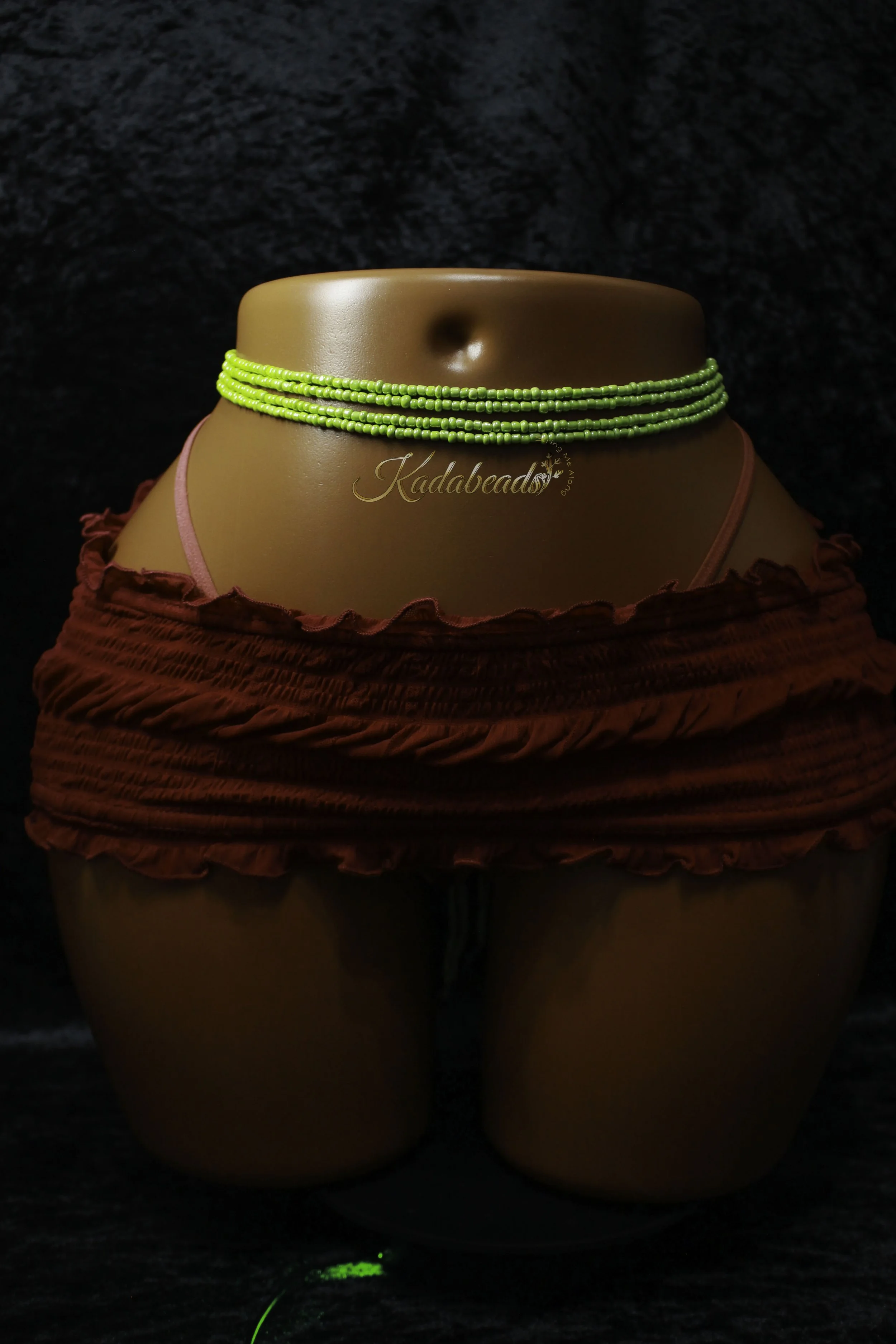 A luscious blend of vibrant green beads kissed with hints of sunlit orange, Tropix is a tie-on waist adornment that moves with you, celebrating every curve and rhythm. Like being under tropical sun, this piece evokes warmth, vitality, and sensual energy with every sway.